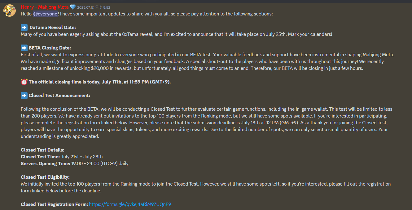그 중 500명은 현재와 미래의 마작 메타 발전에 특별한 기여를 한 기여자, 최고의 선수, 협동 예술가 그룹에 대한 보상으로 트레져리에 포함되어 있습니다.