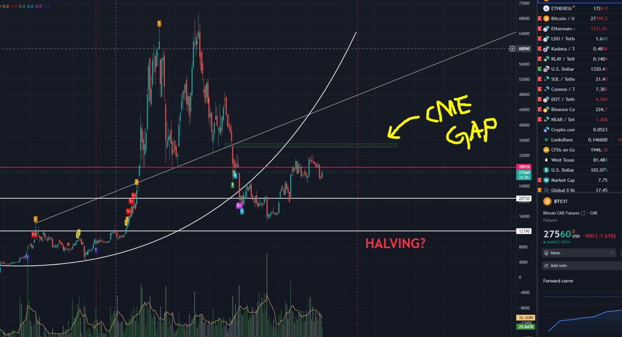 비트코스 주봉.. with CME 비트코스 20K 지점에 갭*이 있었다고 하는 글을 본 거 같은데,