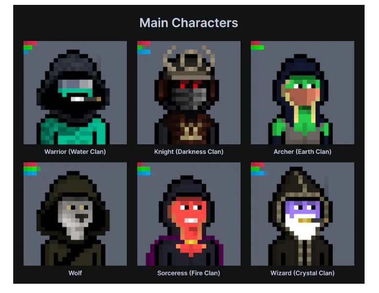 < 공개된 정보 > - 메인 캐릭터는 인간과 늑대 - 각각의 속성 클랜이 있음 - 인간은 전사, 기사, 궁수 세가지 유형 - 스탯 시스템 - 인간은 언데드, 안드로이드와 같은 다양한 형태가 있음 - 늑대는 회색늑대, 숲늑대, 산늑대, 북극늑대의 유형 - 그 외에 레어도에 따른 다른 캐릭터들도 존재.. (코모도 드래곤,, 치타,, 블랙팬서(?)..) - 컬렉션에는 다양한 아이템이 포함되어있음 - 1 of 1 없음. 모두가 고유한 작품이 될 것 - 리빌 없음. 높은 레어리티의 트레잇이 저격될 위험이 없을 것