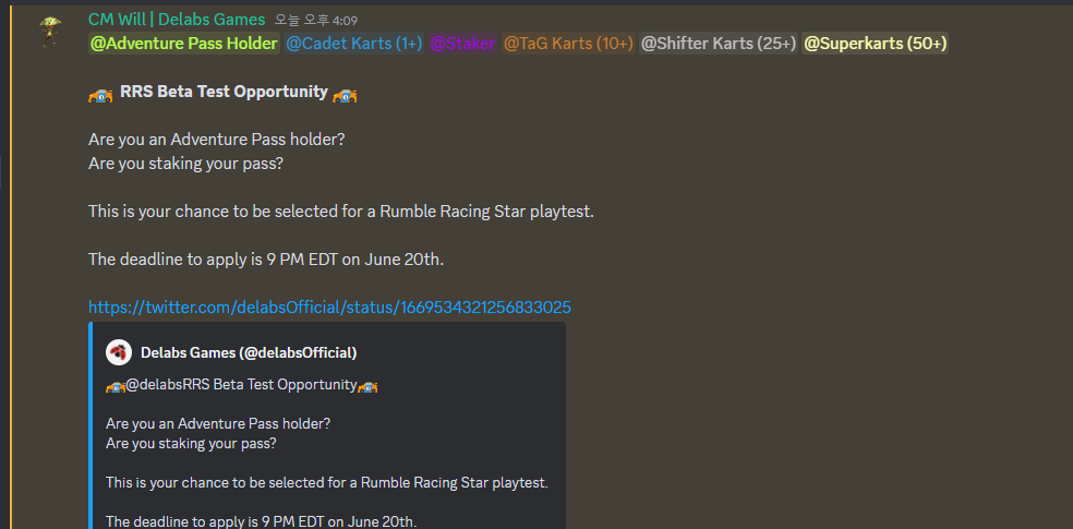 두근두근 레이싱💌 얼마전에 디랩스 게임즈의 첫 타이틀이 될 럼블레이싱스타 (이하 RRS)의 베타 테스터 모집 공지가 떴었다
